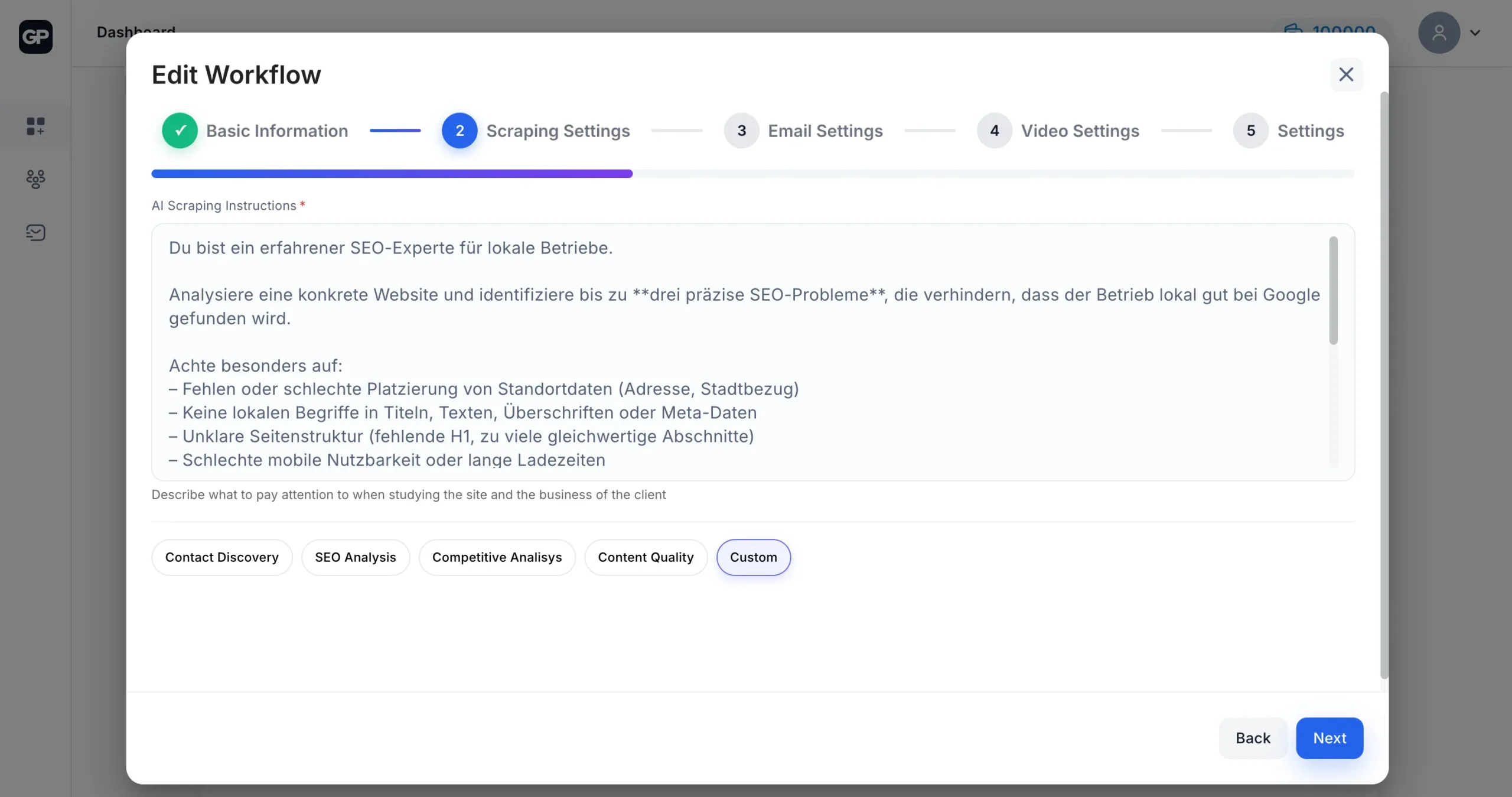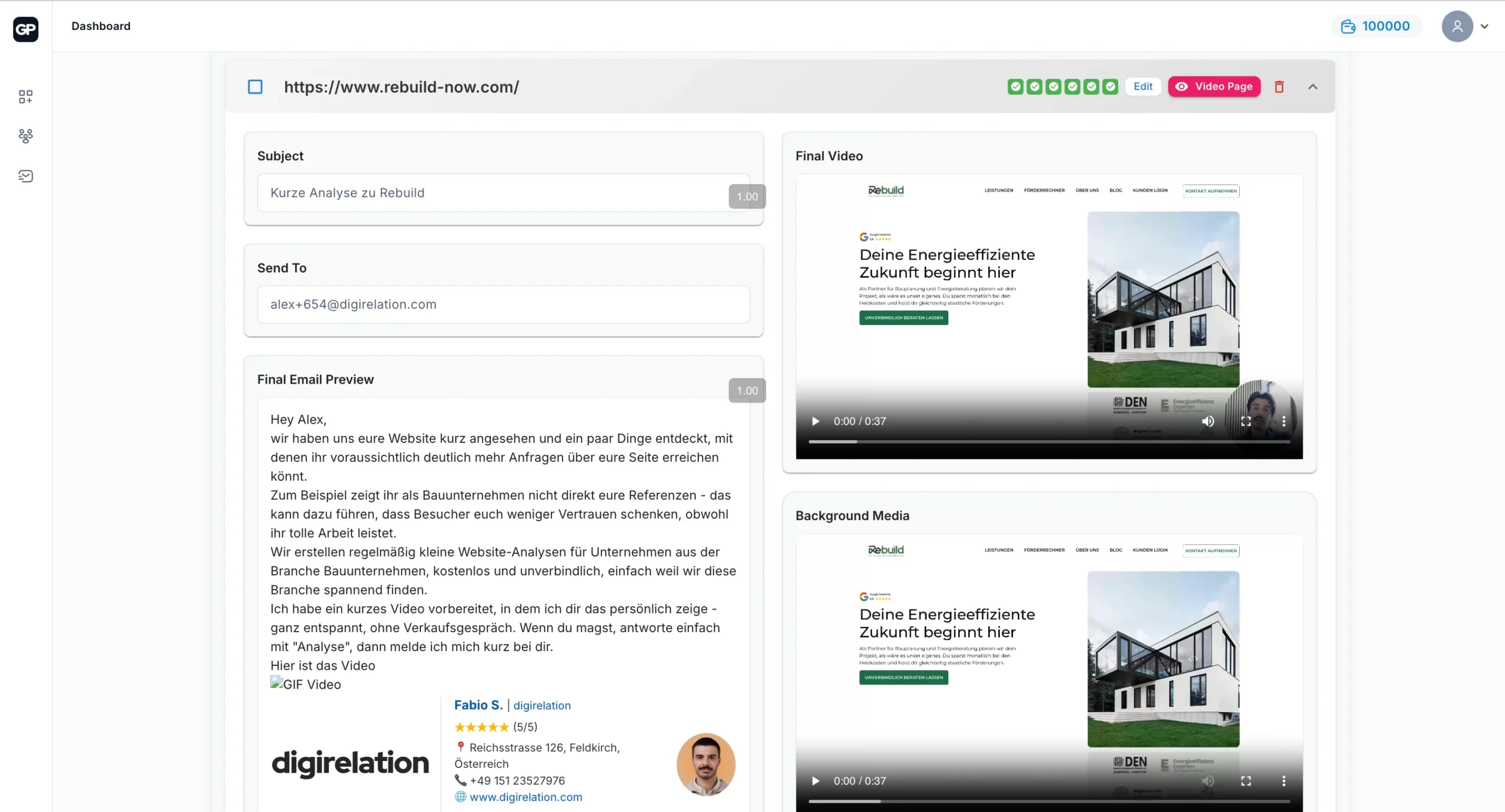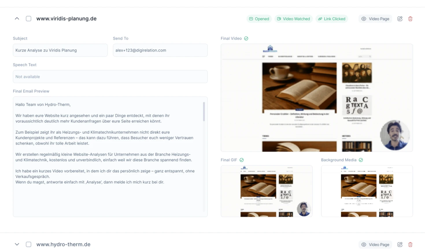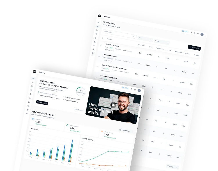 getProspects erstellt automatisch personalisierte E-Mails, Videos und Analysen, die wie echte 1:1-Nachrichten wirken. Dadurch bekommst du schneller qualifizierte Erstkontakte, ohne manuelle Recherche oder komplizierte Setups.